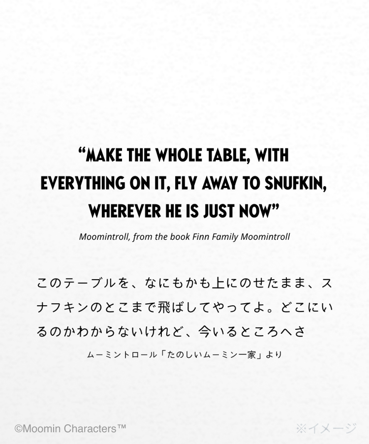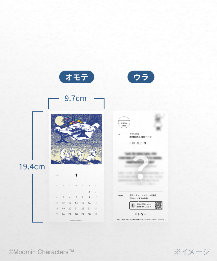 封筒を開くと、そこにはその月だけの出会い。表のカレンダー面には、トーベ・ヤンソンによって書かれた物語の一節を。裏面には小説の挿絵と心に残る名言を毎月セレクトしています。
